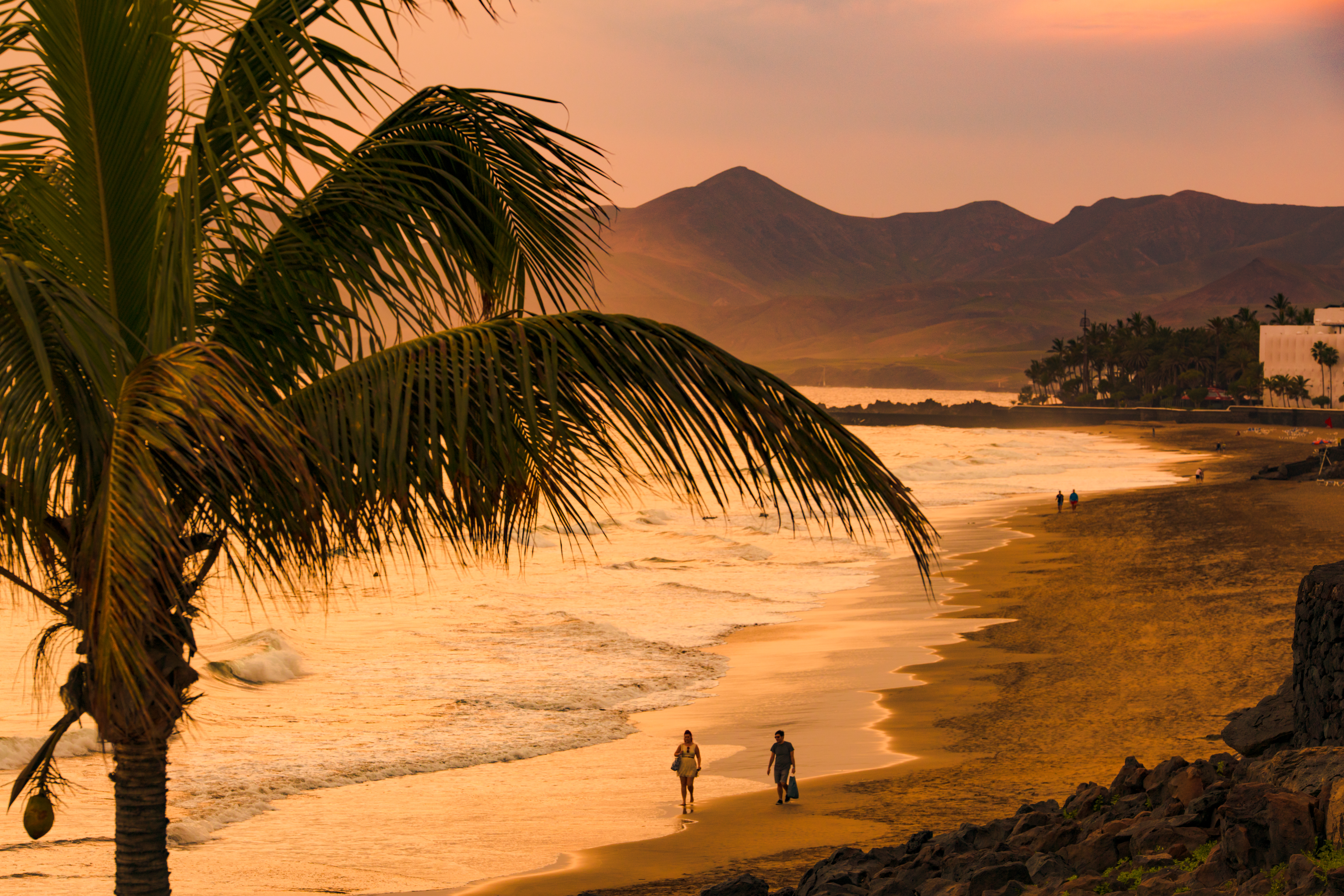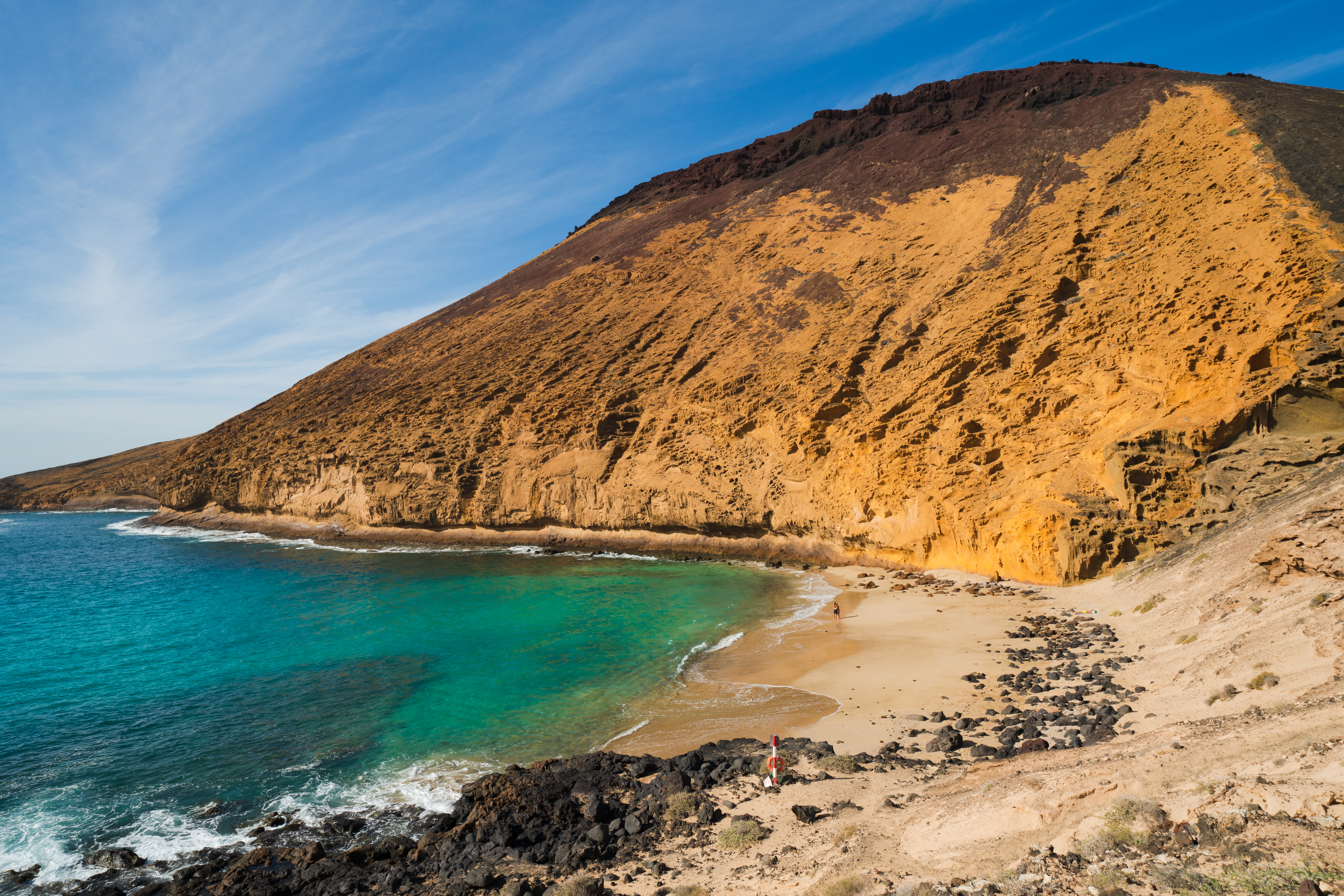 Pechschwarze Strände und krustige Lavafelder, schroffe Felsformationen und strahlend weiße Dörfer mit grün oder blau getünchten Türen und Fenstern: Willkommen auf der nordöstlichsten und landschaftlich sicherlich außergewöhnlichsten Insel der Kanaren. Lanzarote ist ein wahres geologisches Naturspektakel und damit ein zu Recht von der UNESCO geschütztes Biosphärenreservat. Die durch die vulkanischen Aktivitäten in der Vergangenheit und die geringen Niederschläge eher karge Vegetation entfaltet auf dem fast 850 Quadratkilometer großen Eiland ihren ganz eigentümlichen Charme. Sogar Wein wird hier auf den schwarzen Ascheböden von La Geria angebaut – die durchschnittlichen Temperaturen, die tagsüber auch im Winter selten unter 20 Grad fallen, geben es her.
